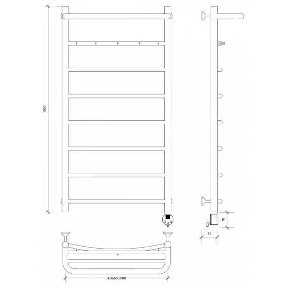 Полотенцесушитель электрический 1070x432 ТЭН правый Secado Триада 2 4603777449087
