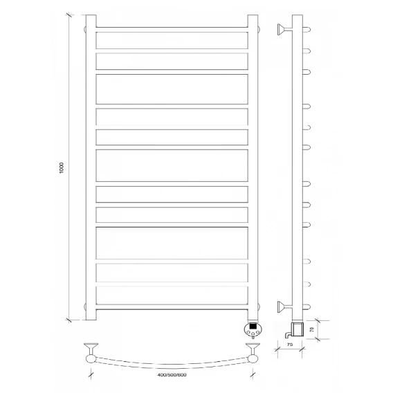 Полотенцесушитель электрический 1070x432 ТЭН правый Secado Милан 3 4603777451646