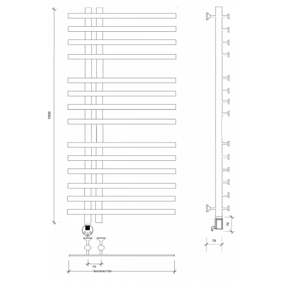 Полотенцесушитель электрический 1070x500 ТЭН левый Secado Коредо 4673739253748