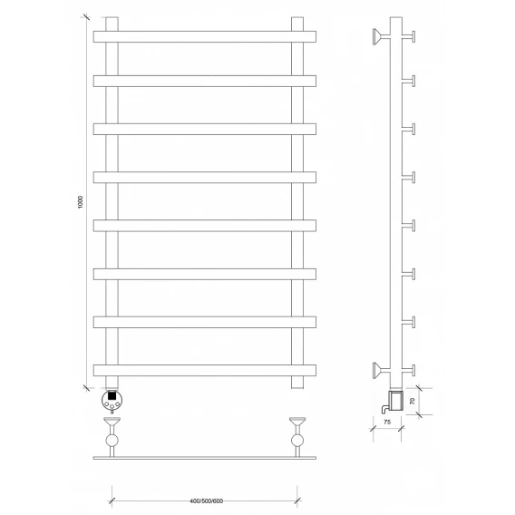 Полотенцесушитель электрический 1070x500 ТЭН левый Secado Понтида 1 4603777456542