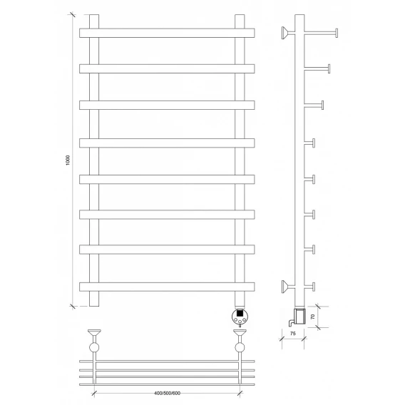 Полотенцесушитель электрический 670x700 ТЭН правый Secado Турин 6 4603777456115