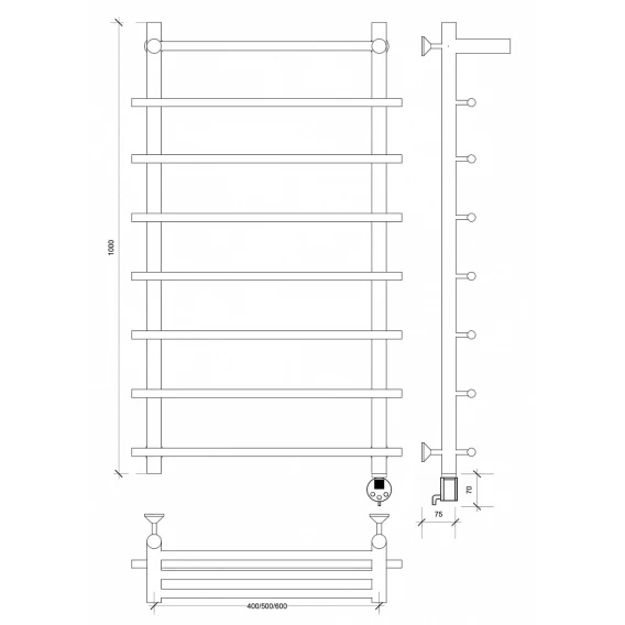 Полотенцесушитель электрический 670x600 ТЭН правый Secado Турин 3 4603777455637