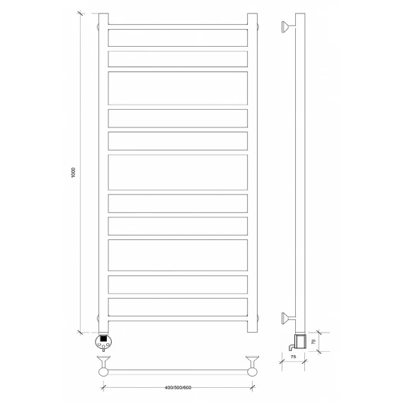 Полотенцесушитель электрический 1070x630 ТЭН правый Secado Модена 2 4603777480288