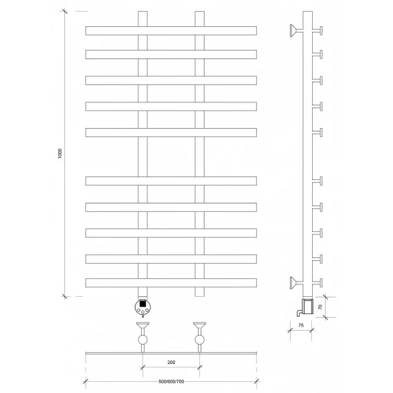 Полотенцесушитель электрический 1070x600 ТЭН левый Secado Понтида 4 4603777457303