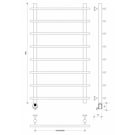 Полотенцесушитель электрический 1070x600 ТЭН левый Secado Турин 1 4603759404035
