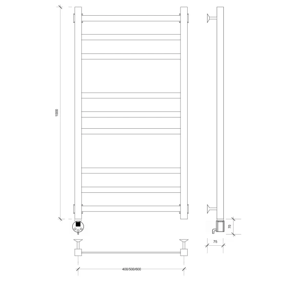 Полотенцесушитель электрический 670x500 ТЭН левый Secado Турин 4 4603759407371
