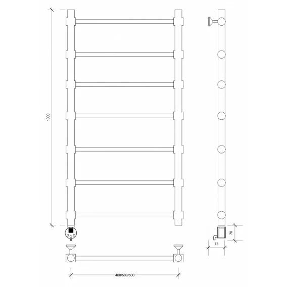 Полотенцесушитель электрический 670x532 ТЭН левый Secado Триада 3 4603759407098