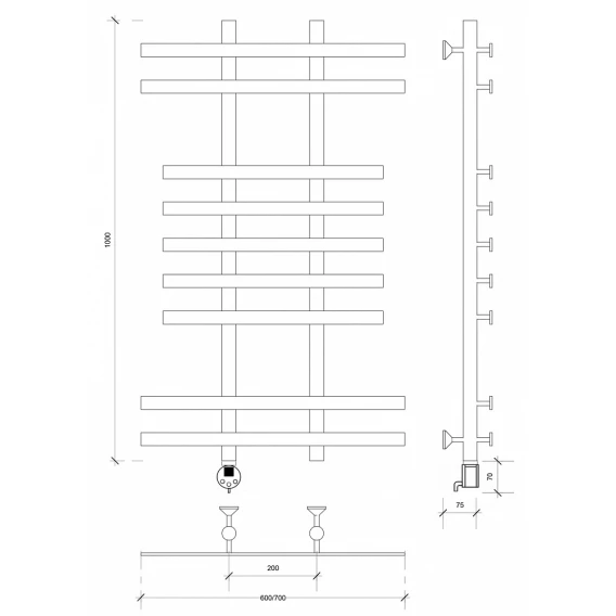 Полотенцесушитель электрический 870x700 ТЭН левый Secado Понтида 1 4603777456528
