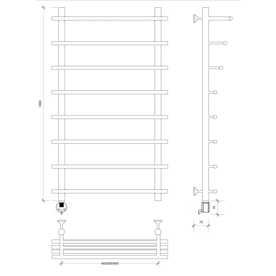 Полотенцесушитель электрический 870x700 ТЭН левый Secado Турин 6 4603777456146