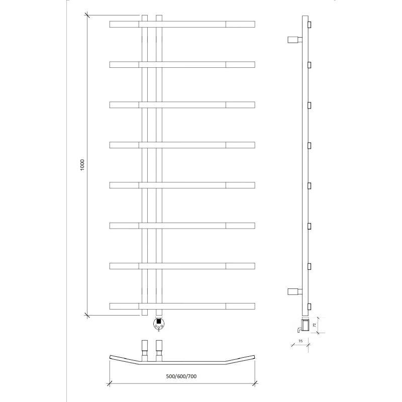 Полотенцесушитель водяной 1200x500 Secado Турин 3 4603759407340