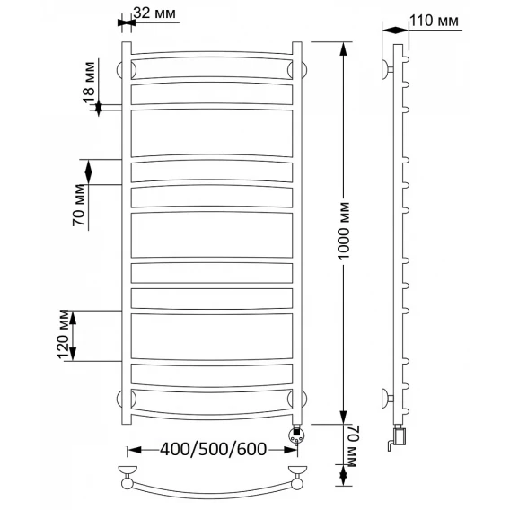 Полотенцесушитель электрический 1070x532 ТЭН правый Secado Милан 3 4603759409108