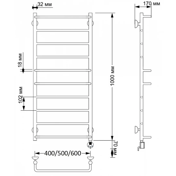 Полотенцесушитель электрический 1070x432 ТЭН правый Secado Верона 1 4603777464127