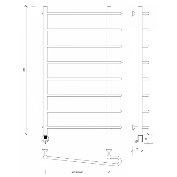 Полотенцесушитель электрический 1070x500 ТЭН левый Secado Понтида 6 4603759403595