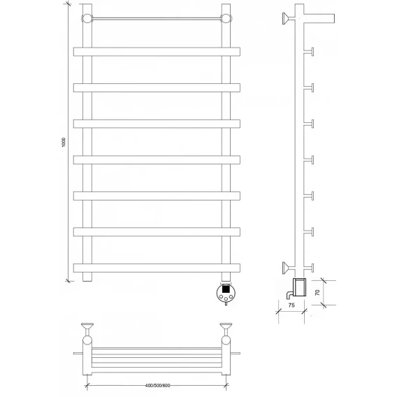 Полотенцесушитель электрический 670x500 ТЭН левый Secado Турин 6 4673739249444