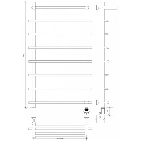 Полотенцесушитель электрический 870x700 ТЭН правый Secado Турин 6 4673739249604