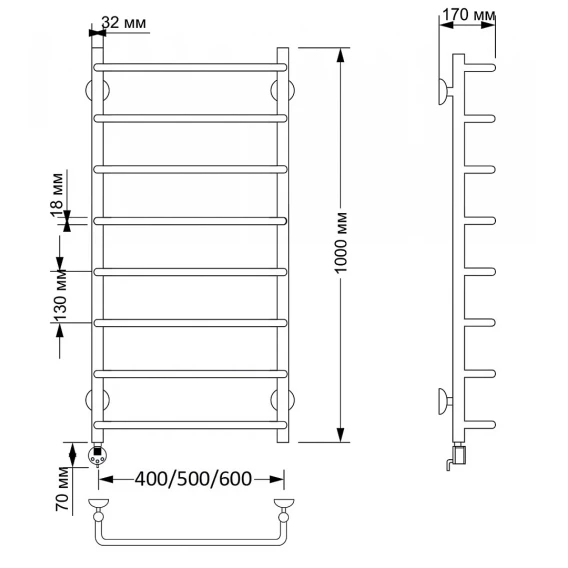 Полотенцесушитель электрический 1070x532 ТЭН левый Secado Мерида 1 4603777477998