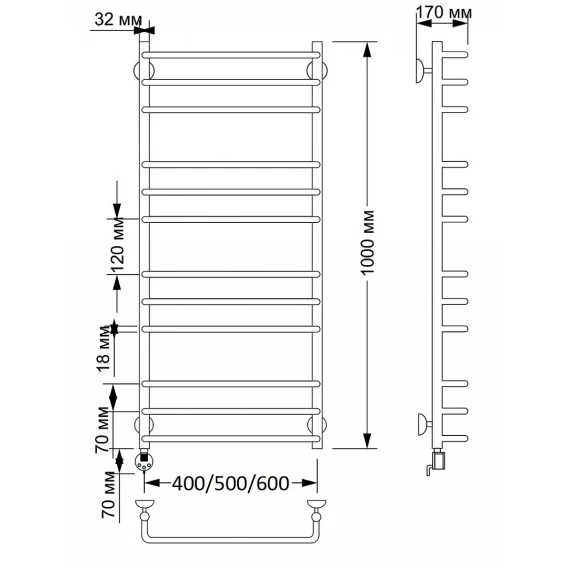 Полотенцесушитель электрический 1070x632 ТЭН левый Secado Мерида 1 4603777463717