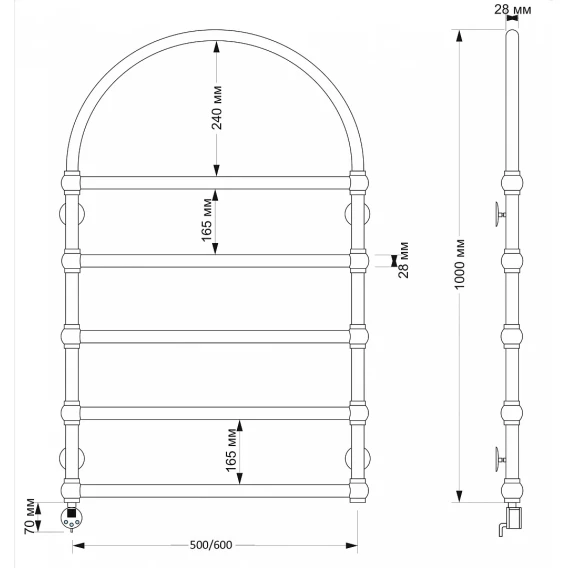 Полотенцесушитель электрический 1070x632 ТЭН правый Secado Римини 4603777465858