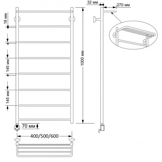 Полотенцесушитель водяной Terminus Стандарт П6 4670078530349 600x577, хром