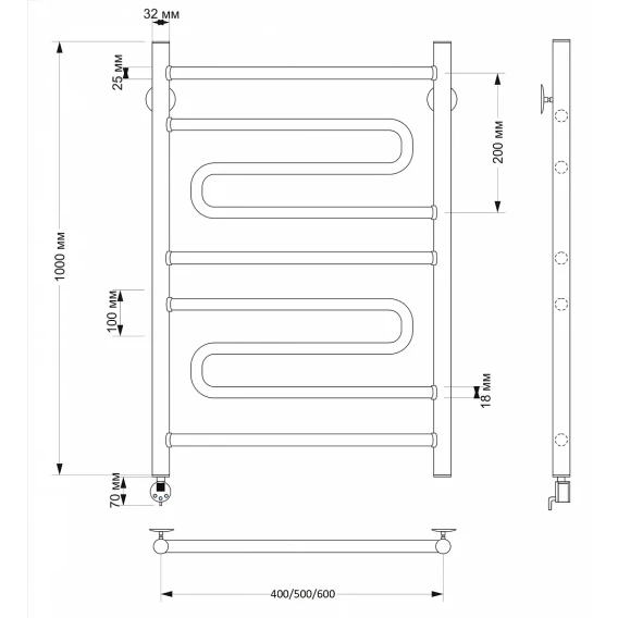 Полотенцесушитель электрический 670x632 ТЭН левый Secado Валенсия 4603777464493
