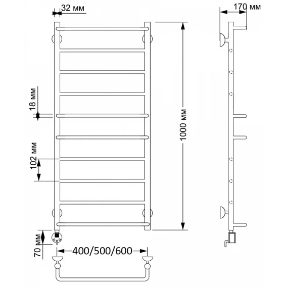 Полотенцесушитель электрический 570x632 ТЭН правый Secado Милан 1 4603777462550
