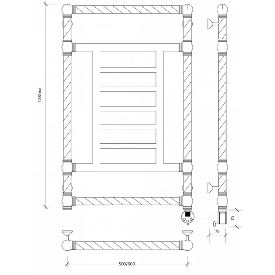 Полотенцесушитель электрический 1070x532 ТЭН правый Secado Фалерони 3 Trenza 4603777466602