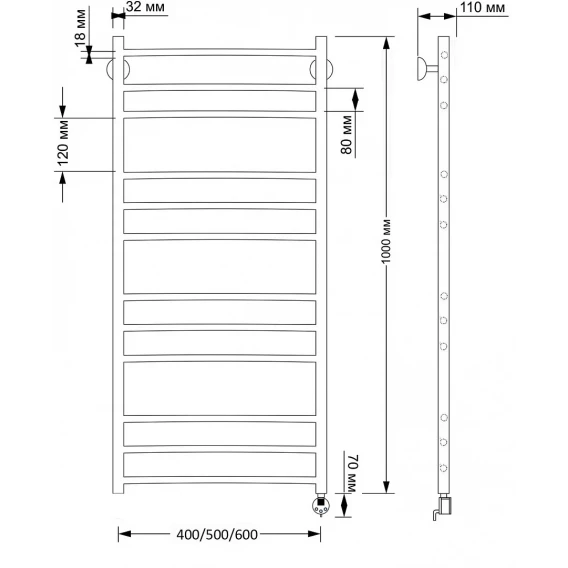 Полотенцесушитель электрический 1070x430 ТЭН правый Secado Модена 2 4603777479992