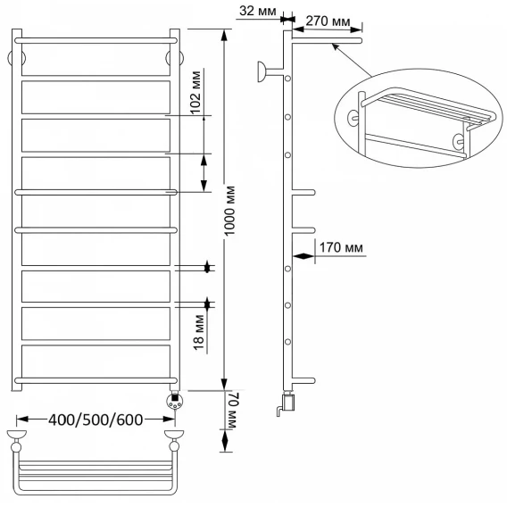 Полотенцесушитель электрический 670x432 ТЭН правый Secado Верона 1 4603777464066