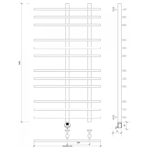 Полотенцесушитель электрический 670x630 ТЭН левый Secado Корсико 1 4603777472764