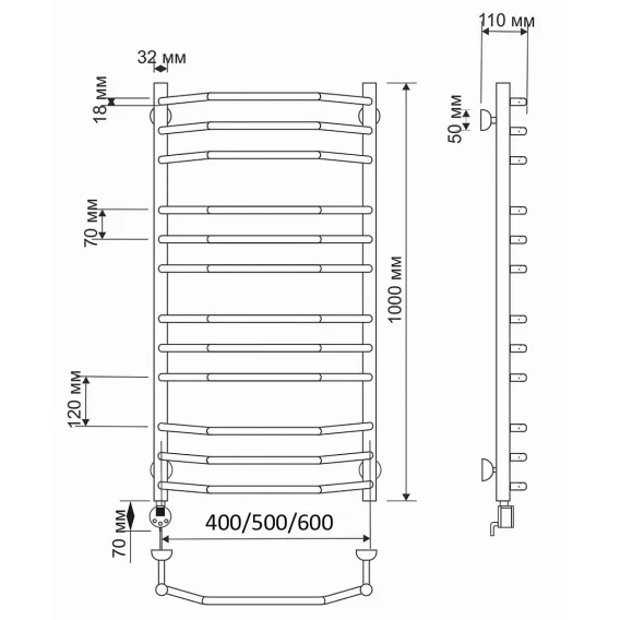 Полотенцесушитель электрический 570x432 ТЭН правый Secado Триада 1 4603777460921