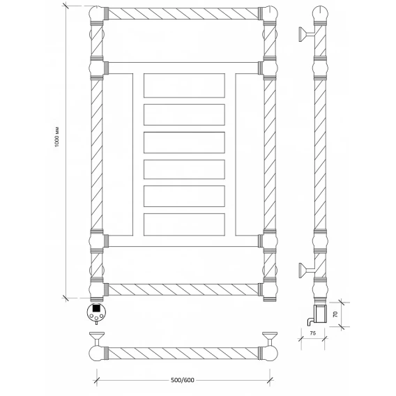 Полотенцесушитель электрический 1070x632 ТЭН левый Secado Фалерони 3 Trenza 4603777466633