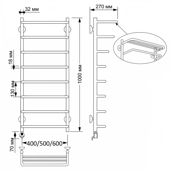 Полотенцесушитель электрический 1070x632 ТЭН левый Secado Мерида 2 4603777463861