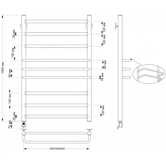 Полотенцесушитель электрический 1070x632 ТЭН левый Secado Триест 4603777466183