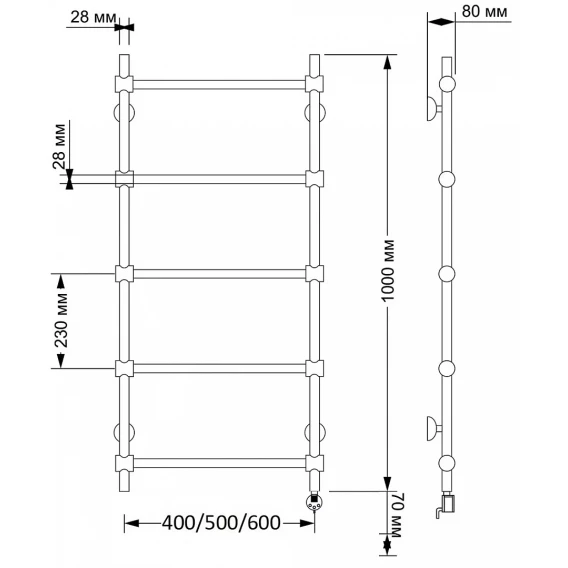 Полотенцесушитель электрический 670x700 ТЭН левый Secado Палермо 4603777465995