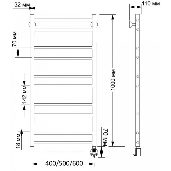 Полотенцесушитель электрический 1070x632 ТЭН левый Secado Милан 4 4603777451813