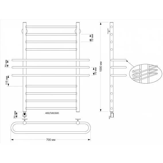 Полотенцесушитель водяной 1000x630 Secado Комано 1КСП 4603759401041
