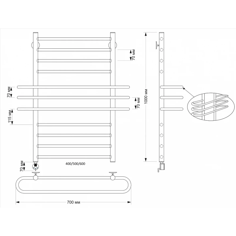 Полотенцесушитель водяной 1000x430 Secado Комано 3 4603777475130