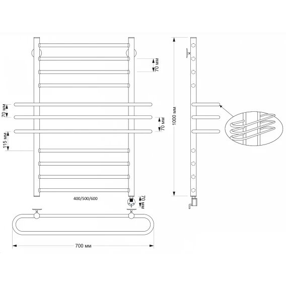 Полотенцесушитель электрический 670x700 ТЭН правый Secado Турин 6 4603777456115