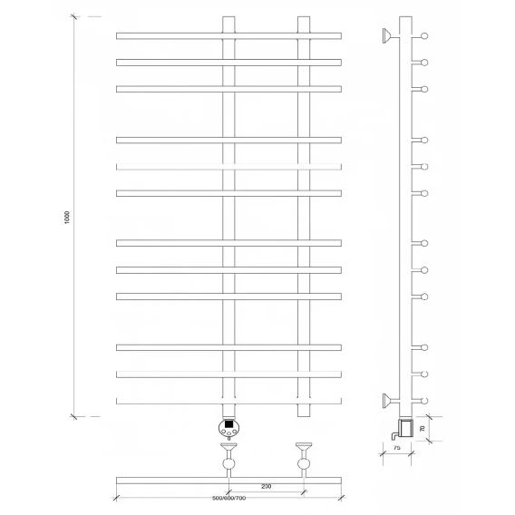 Полотенцесушитель электрический 1070x700 ТЭН правый Secado Турин 3 4603777455736