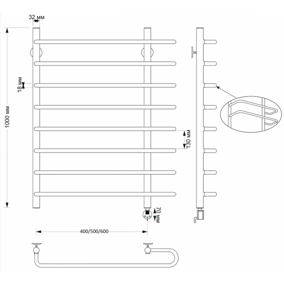 Полотенцесушитель электрический 870x430 ТЭН левый Secado Корато 1 4603777479398