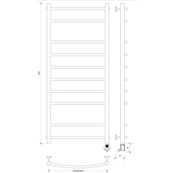 Полотенцесушитель электрический 670x532 ТЭН правый Secado Милан 2 4603759409047