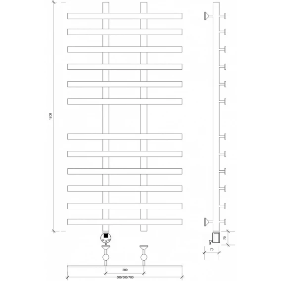 Полотенцесушитель электрический 1270x500 ТЭН левый Secado Понтида 4 4603759406732
