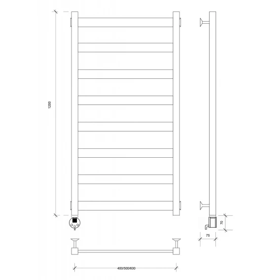 Полотенцесушитель электрический 1270x432 ТЭН левый Secado Мерида 1 4603777463588
