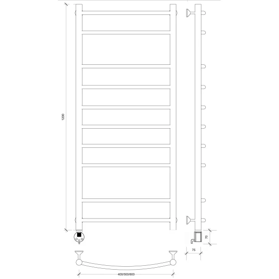 Полотенцесушитель электрический 1270x532 ТЭН левый Secado Валенсия 4603777470050