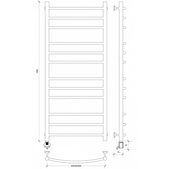 Полотенцесушитель электрический 1070x432 ТЭН правый Secado Милан 3 4603777463250