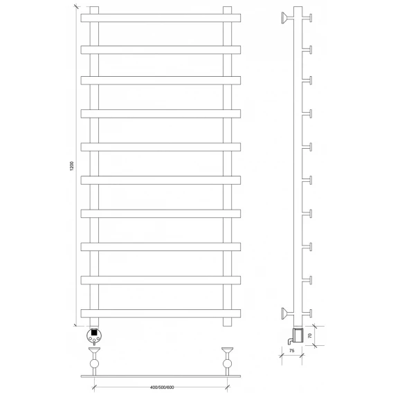 Полотенцесушитель электрический 1270x600 ТЭН левый Secado Понтида 1 4603759406572