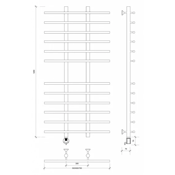 Полотенцесушитель электрический 670x700 ТЭН правый Secado Турин 4 4603777455811