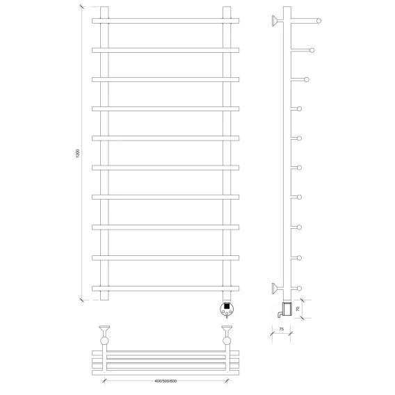 Полотенцесушитель электрический 1270x432 ТЭН правый Secado Милан 4 4603777469887