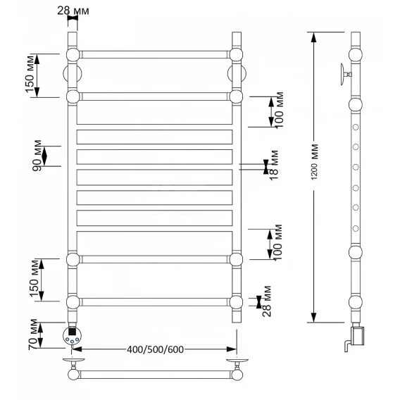 Полотенцесушитель электрический 670x700 ТЭН левый Secado Палермо 4603777465995