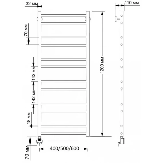 Полотенцесушитель электрический 1270x432 ТЭН левый Secado Триада 2 4603777468392